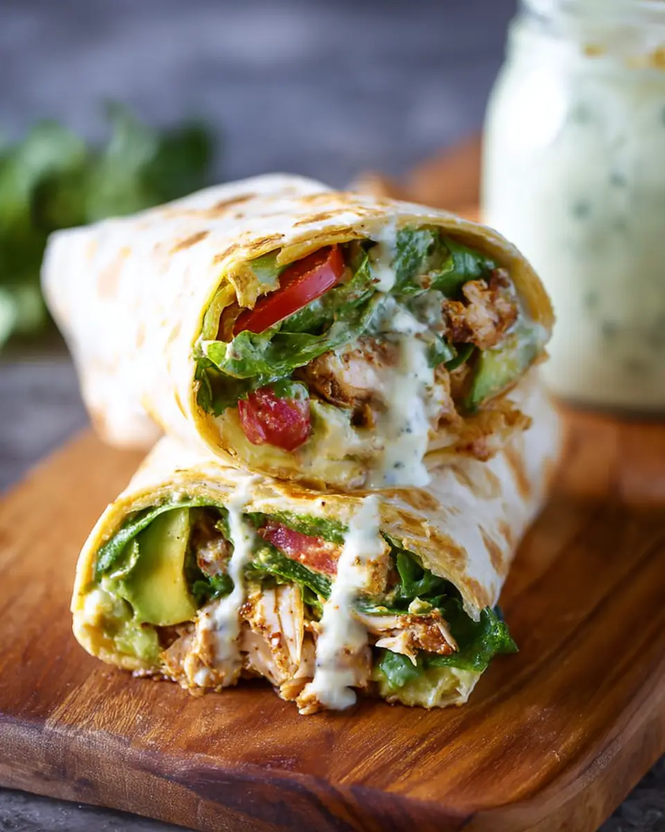 Presentation is key when serving your Avocado Ranch Chicken Burrito Wraps. Try cutting the wraps diagonally to expose the colorful layers inside. Arrange them on a stylish platter with a drizzle of ranch dressing or a sprinkle of fresh cilantro on top for a pop of color. Using individual serving plates can also create a more intimate dining experience. Add some tortilla chips or colorful veggies on the side for a complete and appealing meal!