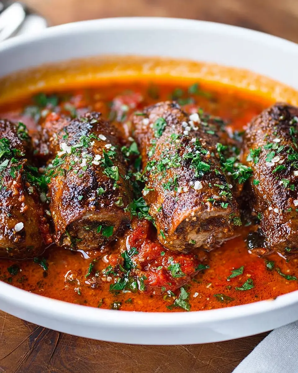 To impress your dinner guests, slice the beef braciole into medallions and serve them elegantly on a platter. Drizzle the rich tomato sauce over the meat and garnish with fresh parsley for a pop of color. Pair with a good loaf of crusty bread for a perfect pairing to soak up the sauce. Enhance the dining experience with soft background music and a beautifully set table—your guests won’t forget this meal! For more presentation ideas, check out this guide on plating techniques.