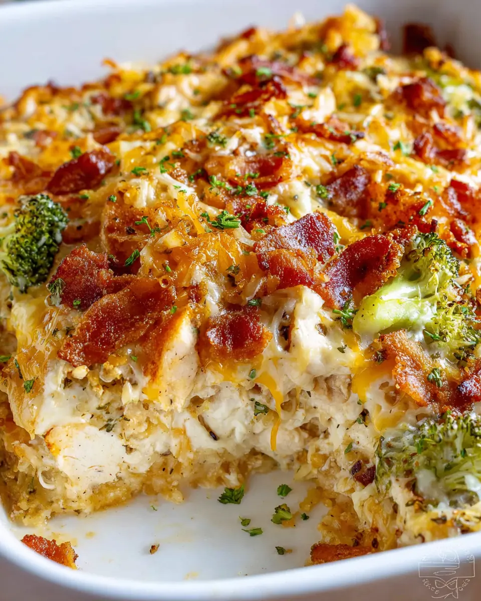 Boost the visual appeal and flavor of your Chicken Bacon Ranch Casserole by adding: