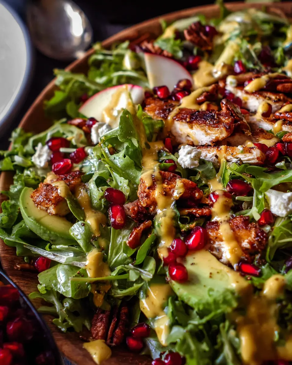 To create the perfect Christmas Salad with Honey Mustard Dressing, start with a vibrant base of mixed greens—about 6 cups should do the trick. Combine these with 2 cups of crisp Frisée for added texture. Next, elevate the flavors with juicy, chopped apples or pears (1-2 would suffice) and 2 sliced avocados. Don’t forget a generous handful of pomegranate arils (2 cups) for a delightful pop of color and sweetness!