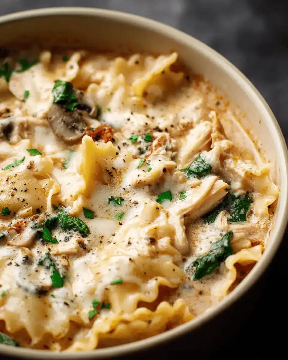 In summary, this creamy chicken lasagna soup is a delightful twist on traditional lasagna that combines convenience with comfort. With its rich flavors and hearty ingredients, it's perfect for busy weeknights or when you're craving something special. Give it a try, and bring a cozy meal to your table!