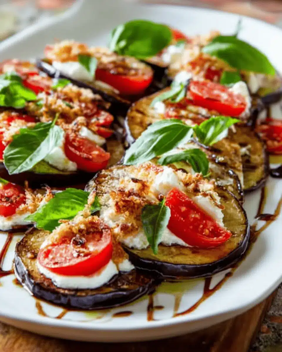 Want a plant-based option? Swap in vegan mozzarella or cashew cream for a delicious take on the classic. Combining marinated eggplant with ripe tomatoes and fresh basil, topped with balsamic glaze, keeps it fresh and filling. Explore this recipe variation to enjoy the same great taste without dairy!