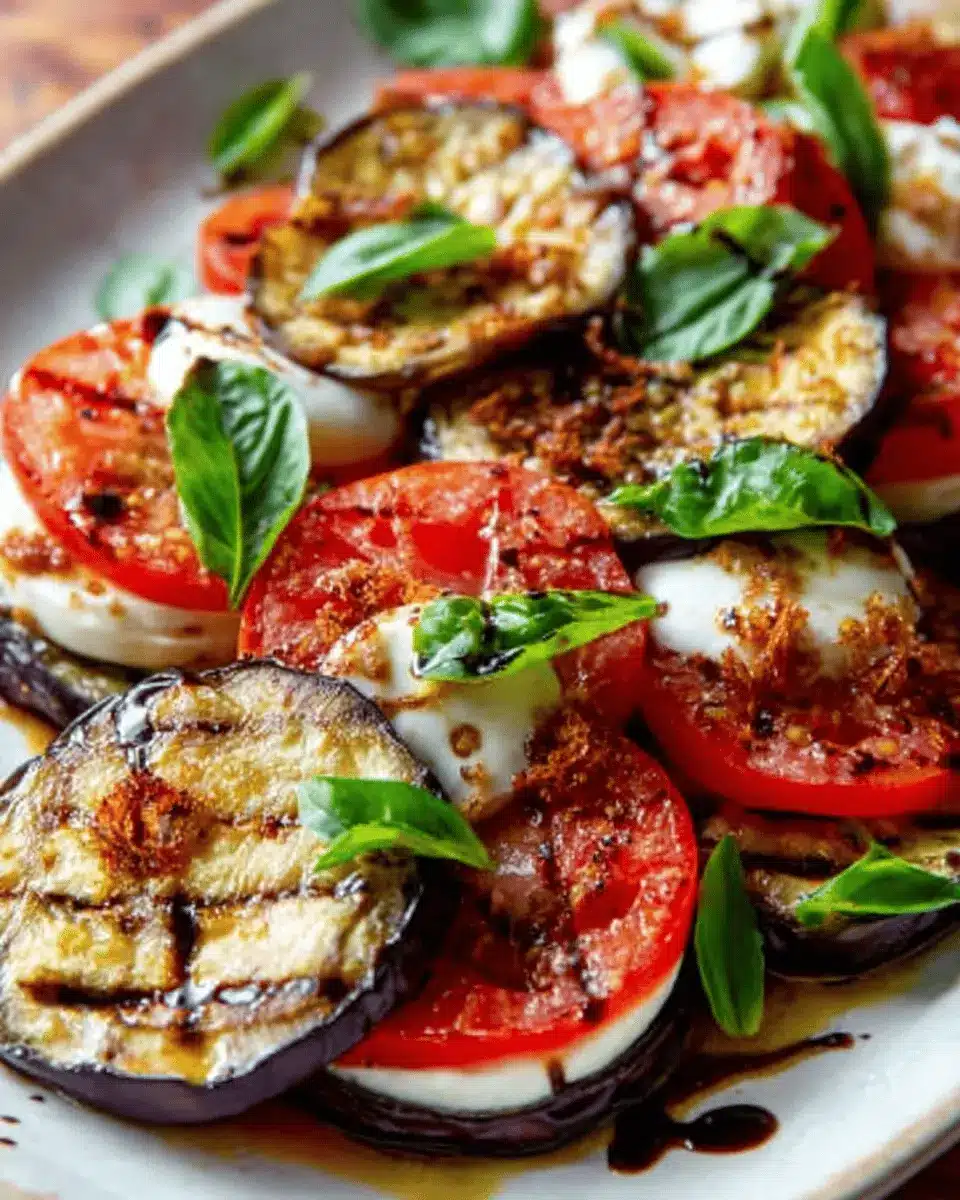 For a smoky twist, try a grilled eggplant caprese salad. Simply grill your eggplant slices instead of frying them. This method enhances the flavor and gives the dish a delightful char. Pair it with fresh mozzarella, juicy tomatoes, and a drizzle of olive oil to create a vibrant dish that screams summer!
