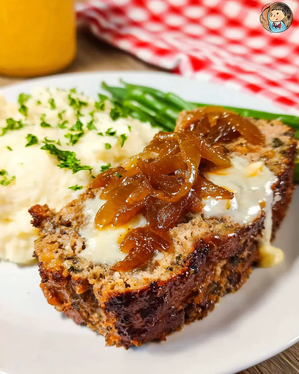 In closing, the French onion meatloaf is a delicious and savory twist on a classic dish, perfect for weeknight dinners or weekend gatherings. The creamy, rich flavors meld beautifully with the tender meat, making it a family favorite. Give it a try and savor the warmth it brings to your table!