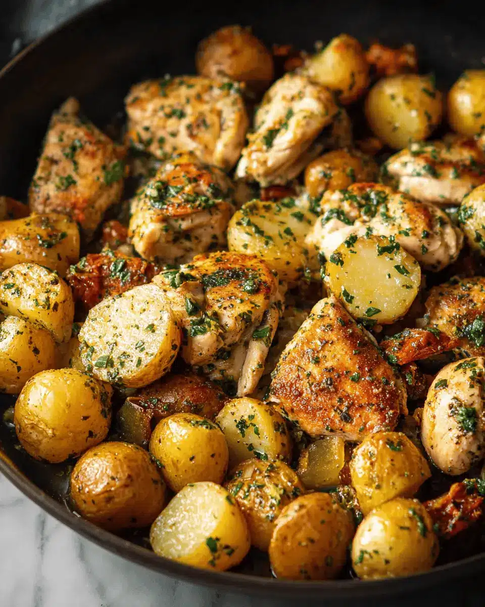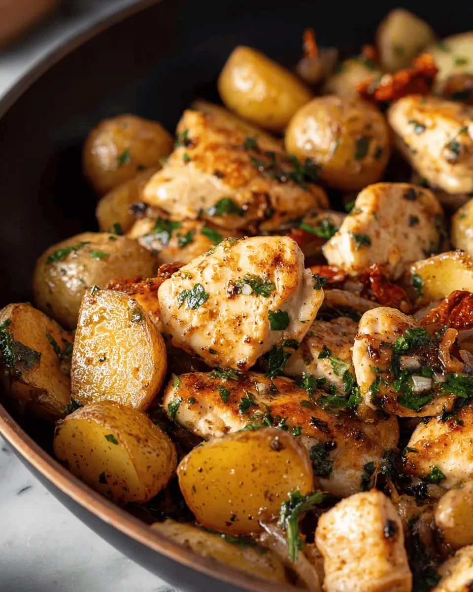 Step-by-step preparation of Garlic Butter Chicken and Potato Skillet