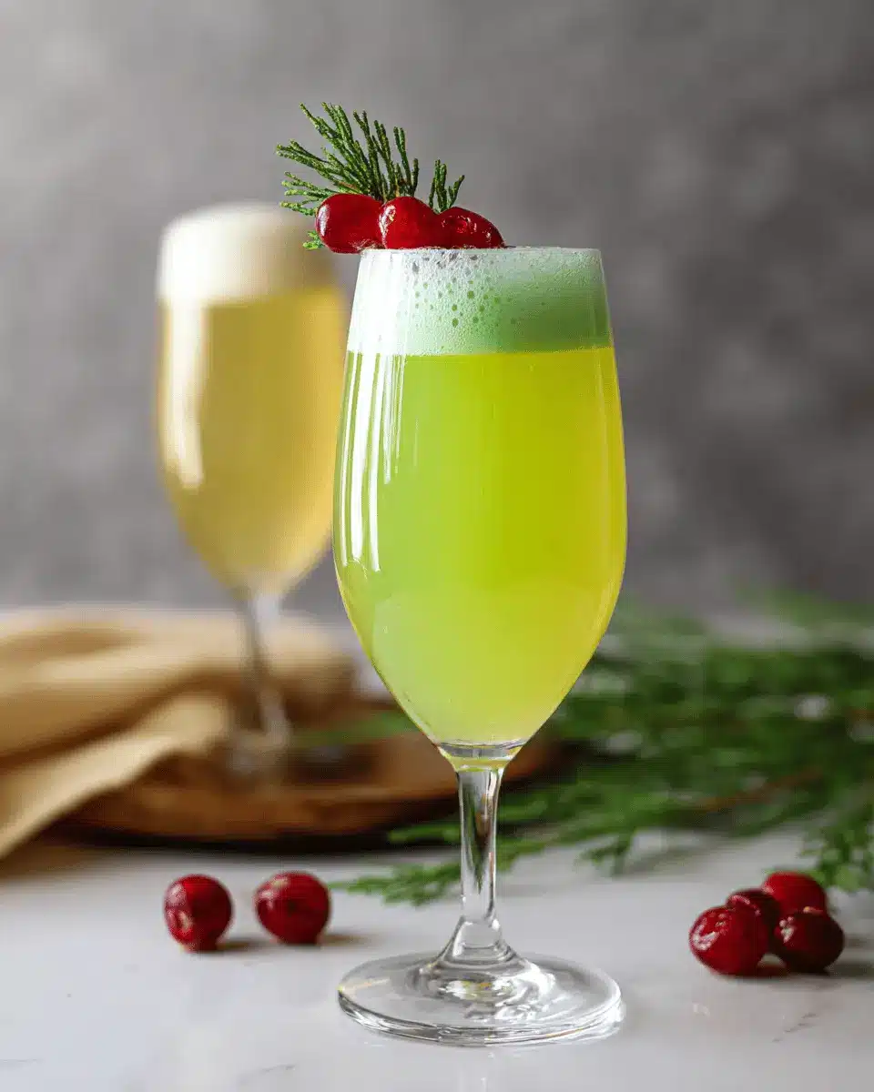 In conclusion, the Grinch Mimosa is a delightful twist on your holiday beverage menu. Easy to make and visually stunning, it’s perfect for celebrating with friends or family. Embrace the festive spirit, and let this vibrant drink add a special touch to your seasonal gatherings! Cheers!