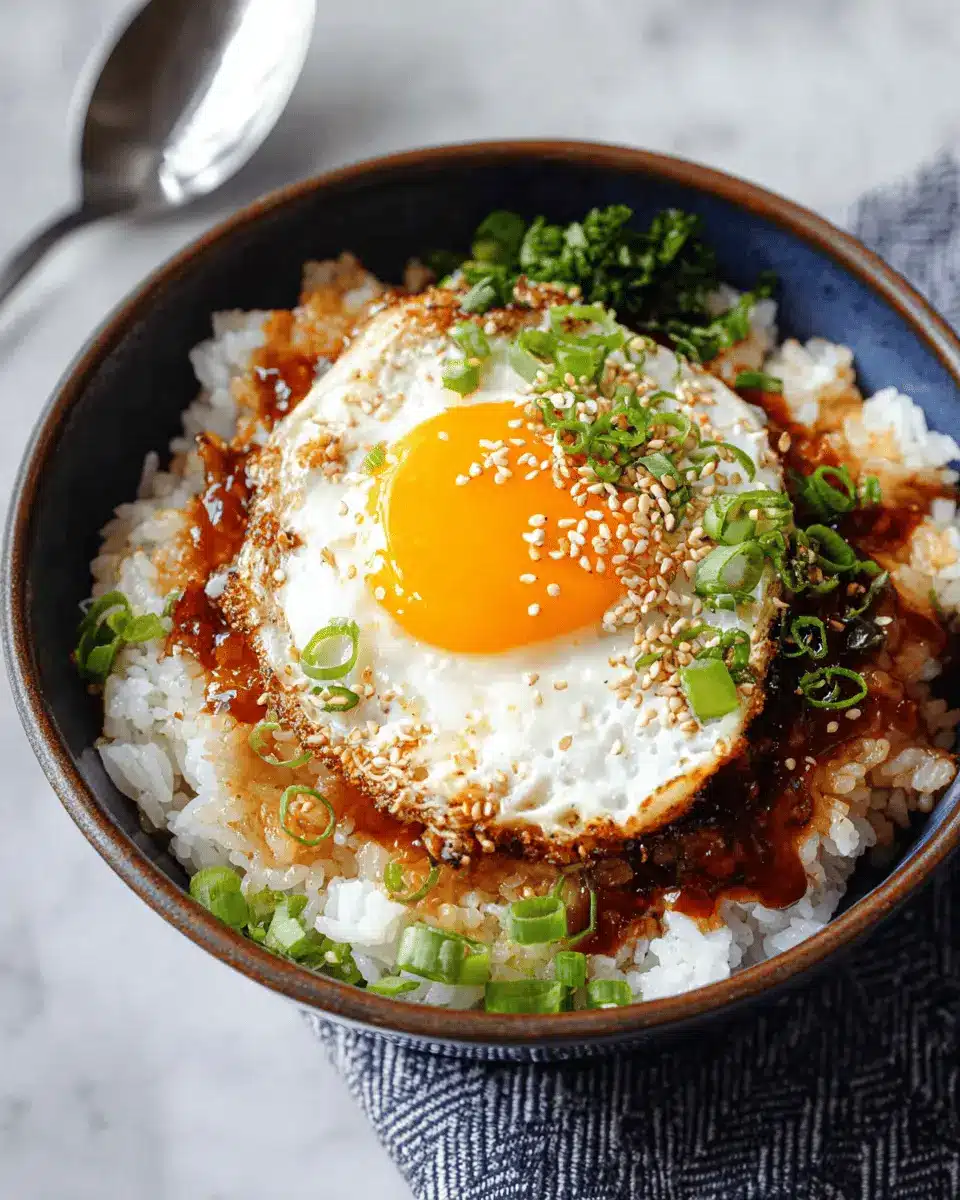 This delightful dish consists of simple steamed short-grain rice topped with a perfectly fried egg. All it needs is a splash of soy sauce and a sprinkling of green onions and sesame seeds to elevate it to something truly special. Not only is it easy to prepare, but it’s also adaptable. Throw in some leftover chicken ham or sautéed veggies, and you have a nourishing meal that feels gourmet.