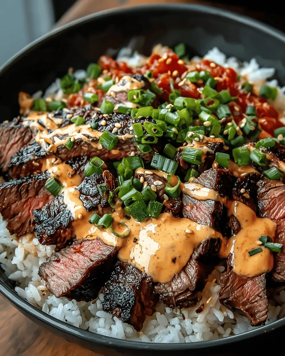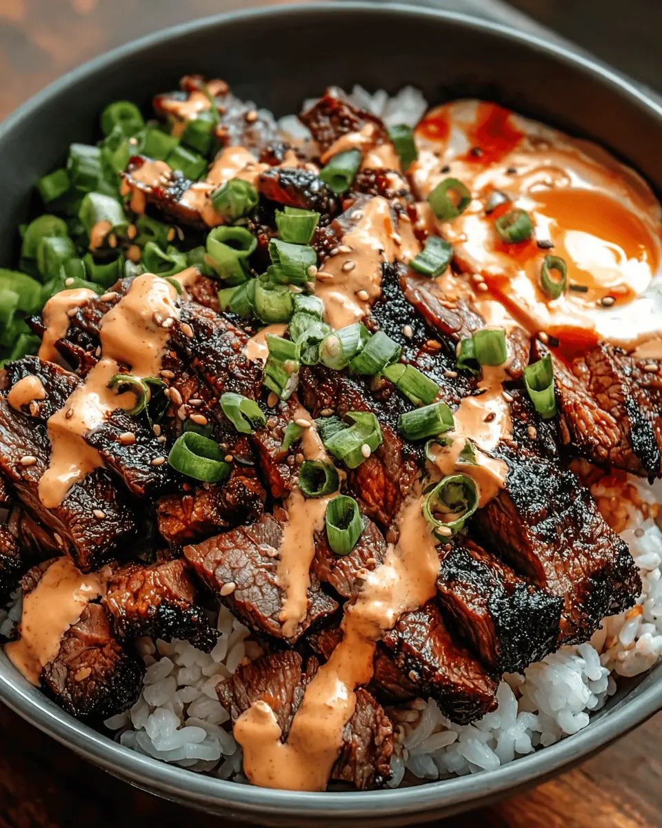 Korean BBQ Steak Rice Bowls with Spicy Cream Sauce