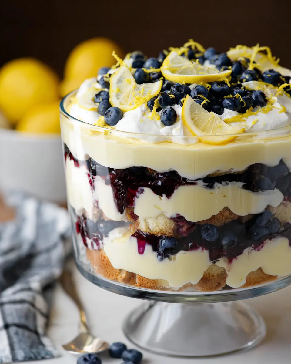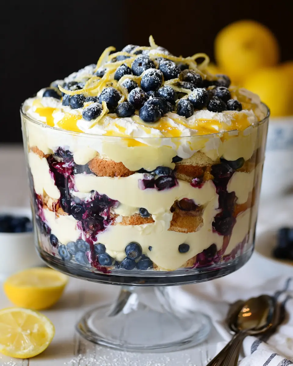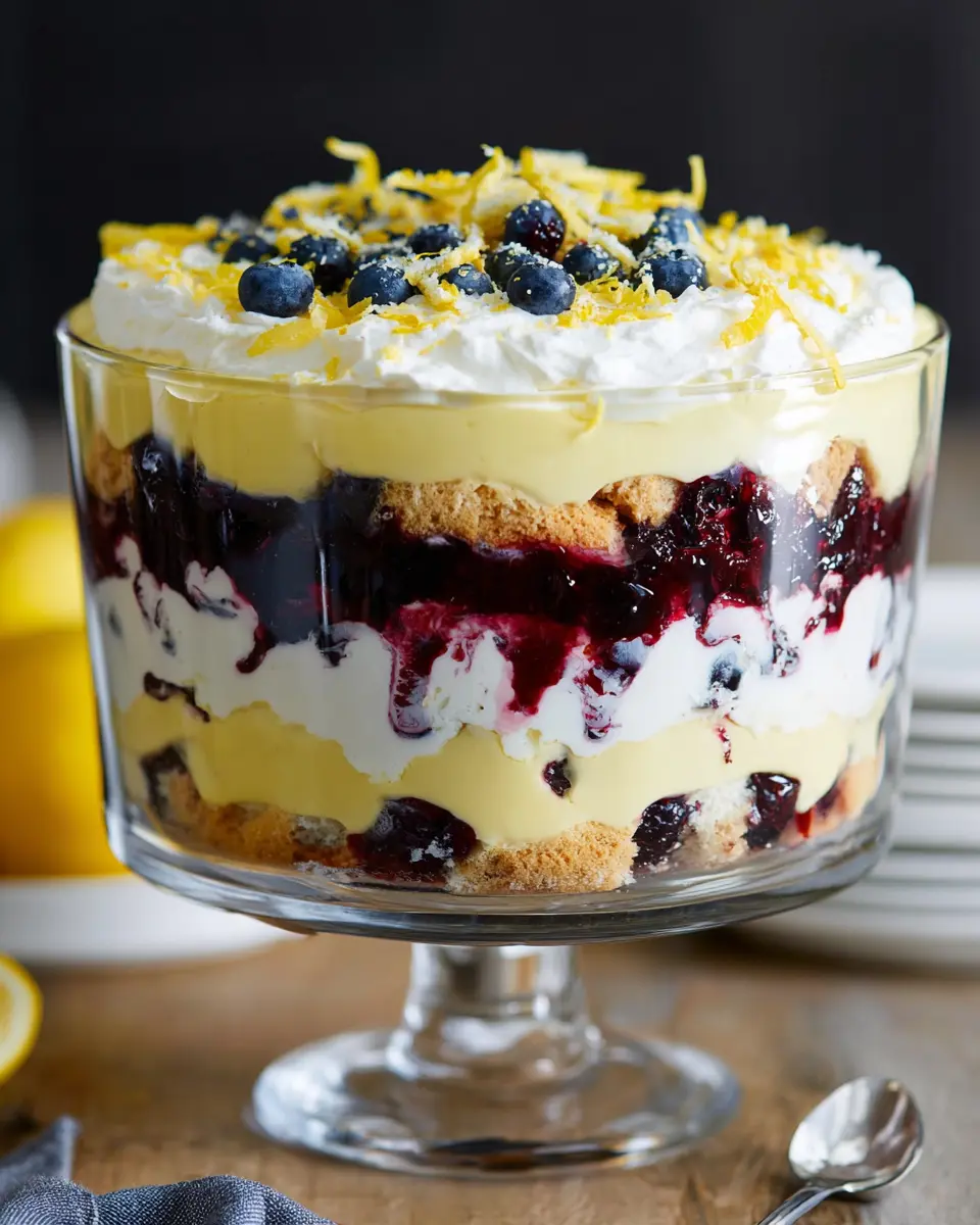 With approximately 24 grams of sugar per serving, this trifle balances sweetness with the tartness of lemon and blueberries, creating a harmonious flavor experience.