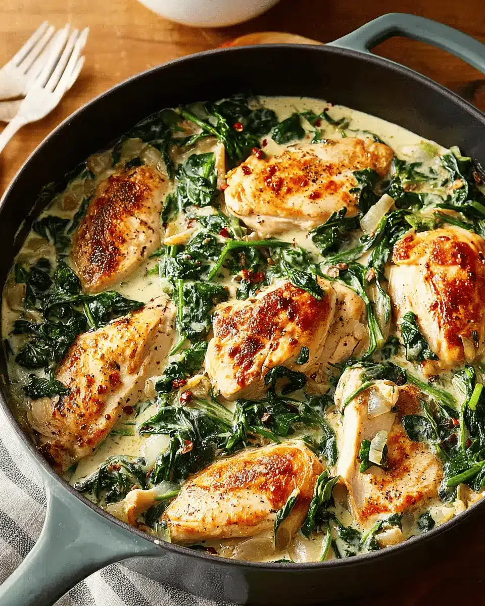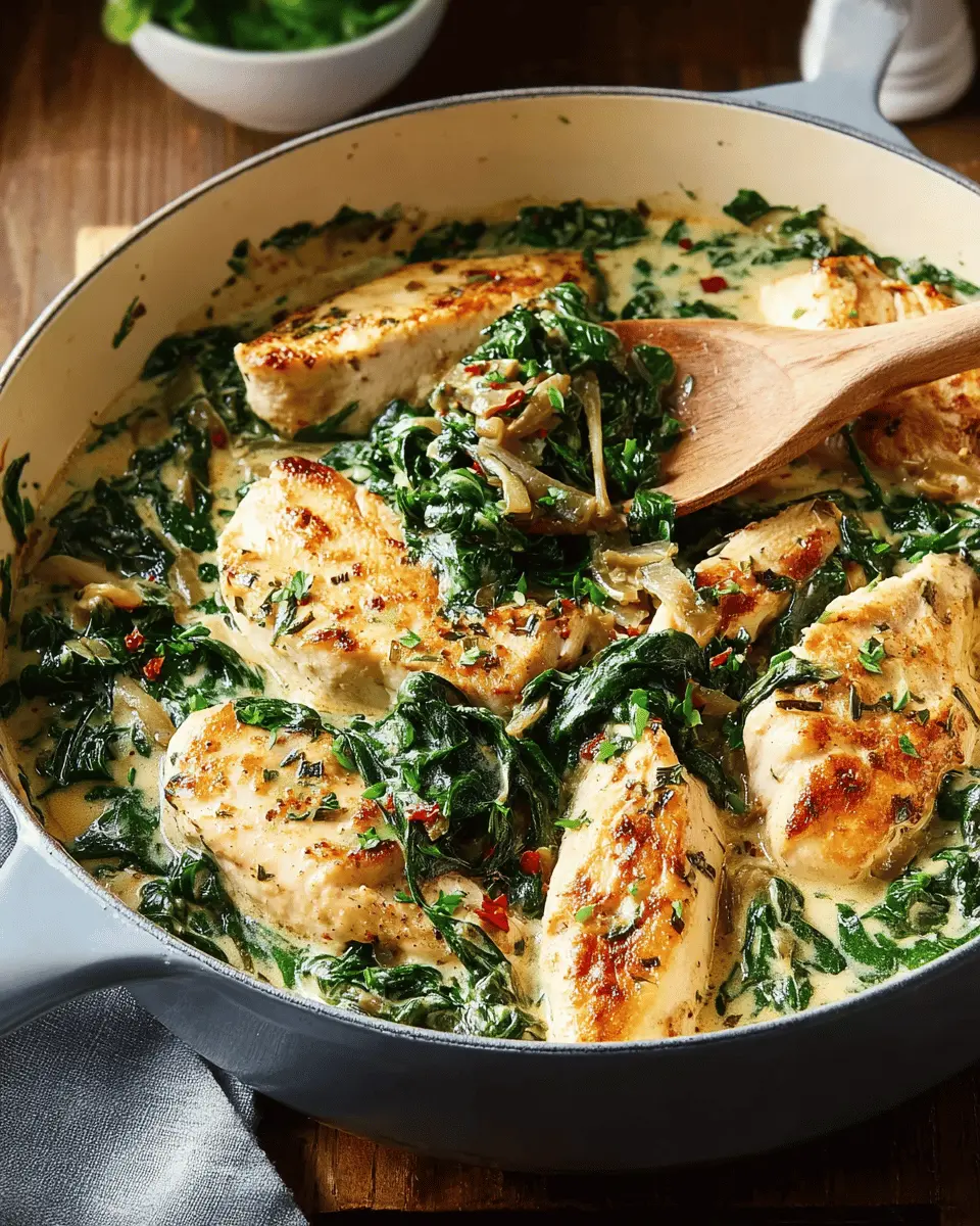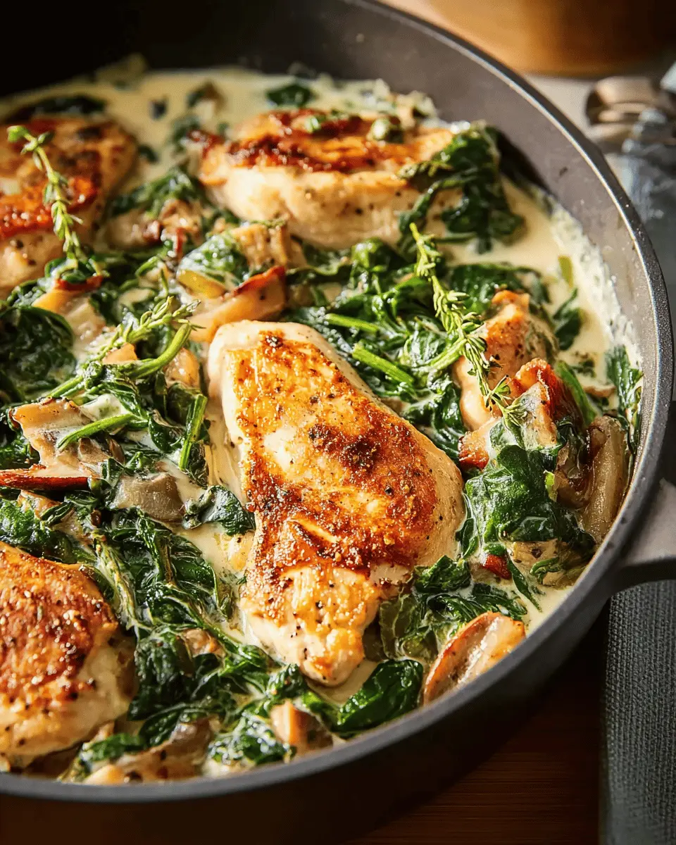 Finally, it’s time to bring everything together. Place your chicken back into the pan, and ensure it’s coated with that luscious creamy spinach sauce. Serve hot, garnished with a sprinkle of fresh pepper if you like. This dish is not just a feast for the eyes but also for your taste buds!