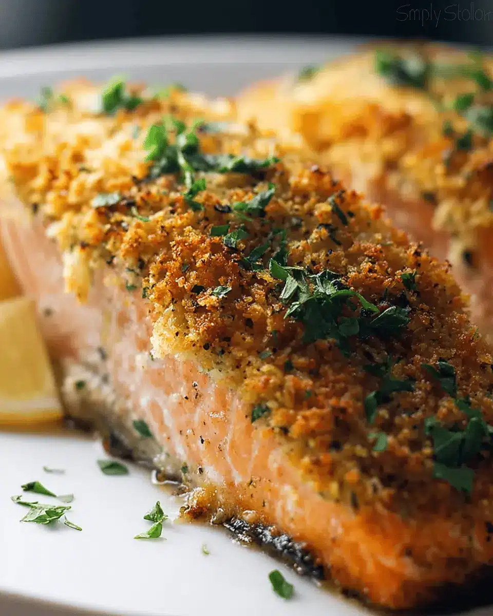 Elevate your panko-crusted baked salmon experience by adding a few delightful dipping sauces and garnishes. A zesty remoulade or tangy yogurt sauce complements the crunch beautifully. You might also try a drizzle of balsamic glaze for a touch of sweetness, or fresh lemon wedges for a citrusy kick. Garnishing with finely chopped herbs, like dill or more parsley, can also brighten up the dish visually and flavor-wise. Don't hesitate to get creative and make it your own!