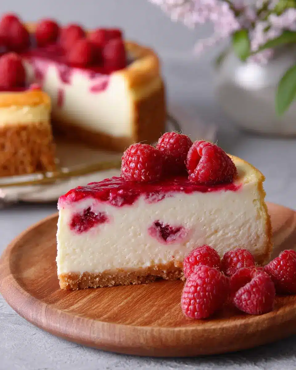 Patience is key; once baked, turn off the oven and let your raspberry cheesecake cool for an hour inside. Transfer it to the refrigerator for at least 6 hours, or overnight if you can resist! This allows the flavors to meld beautifully. When you’re ready to serve, consider topping it with more raspberries and a drizzle of your cooled raspberry sauce.