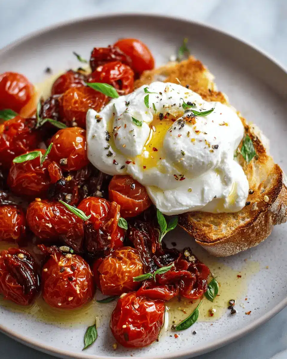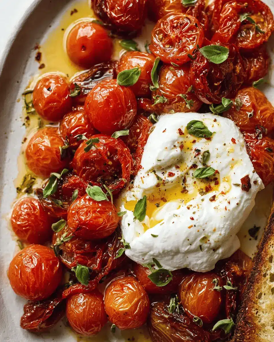 If burrata isn’t available, don’t worry! Creamy goat cheese or fresh mozzarella can be excellent alternatives. Both will provide that rich, creamy texture that pairs beautifully with the roasted tomatoes. You might even try a sprinkle of ricotta for a lighter option!