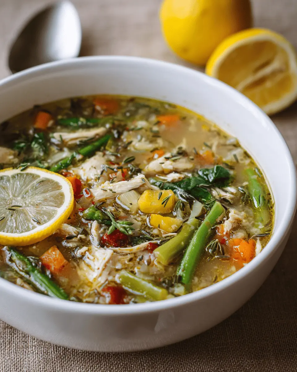 Elevate your simple lemony chicken soup by incorporating Mediterranean flavors! Toss in a handful of fresh parsley, dill, or oregano to really enhance the taste. You could also add kalamata olives or even artichoke hearts for an extra punch. These ingredients bring a delightful, savory richness to your soup while balancing the brightness of the lemon.