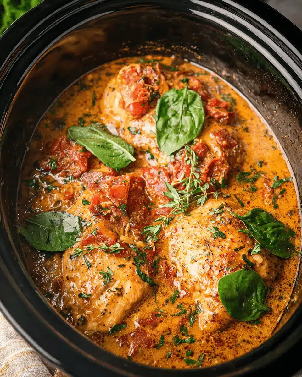 Want to switch things up and make this dish vegetarian-friendly? You can easily substitute the chicken with plant-based proteins like extra-firm tofu or tempeh. Just cube the protein, season it similarly, and let it soak up all those rich, creamy flavors as it slow cooks. Pair with a hearty vegetable broth for extra flavor and enjoy a deliciously creamy Tuscan-inspired dish without the meat. For more inspiring vegetarian protein options, check out sources like Healthline.