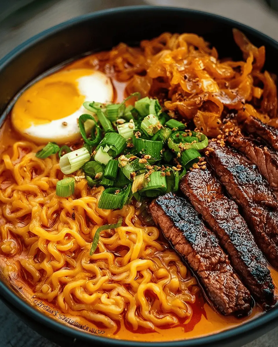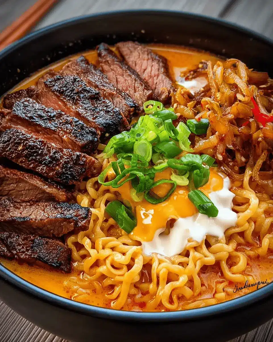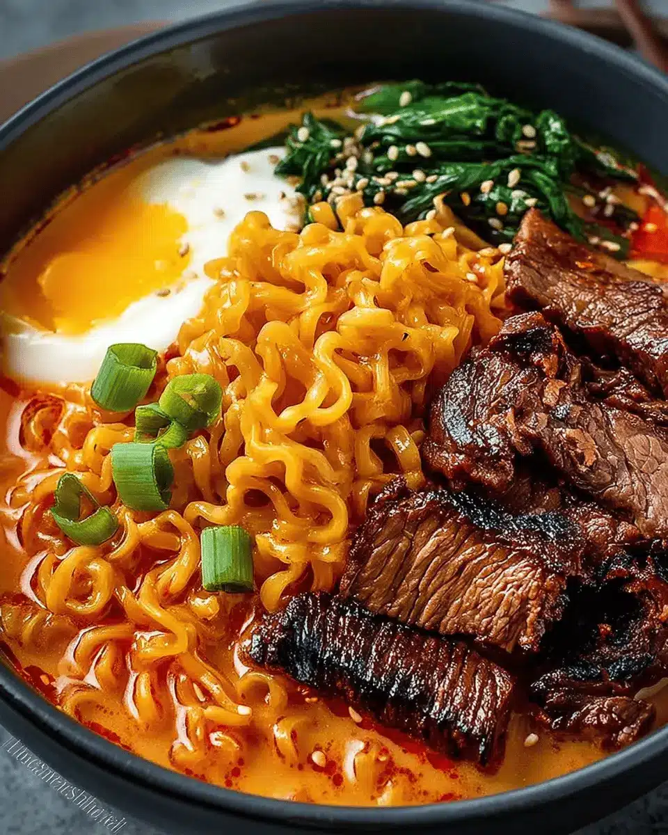 Creating a bowl of spicy Korean ramen filled with tender grilled beef and a rich creamy sauce is a rewarding experience. Let’s walk through the steps together!