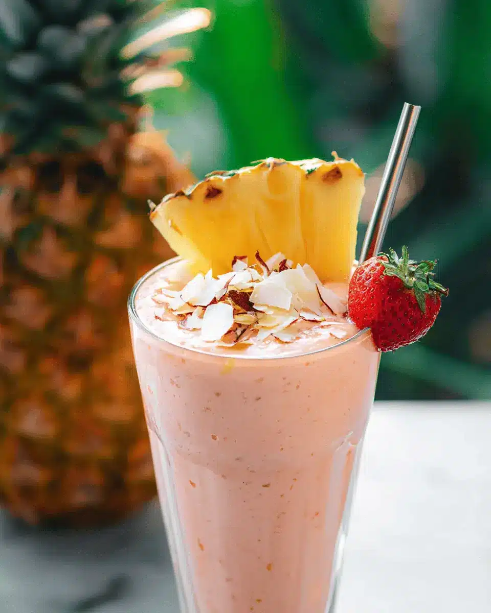 Think about serving your tropical smoothie alongside light snacks for a perfect summer gathering. Pair it with coconut-infused energy bites or tropical fruit skewers for a fun and vibrant appetizer spread. If you're feeling adventurous, add a platter of turkey bacon-wrapped pineapple for a savory twist that complements the sweetness of your drink. These combinations will surely impress your guests and keep the vibes light and breezy!